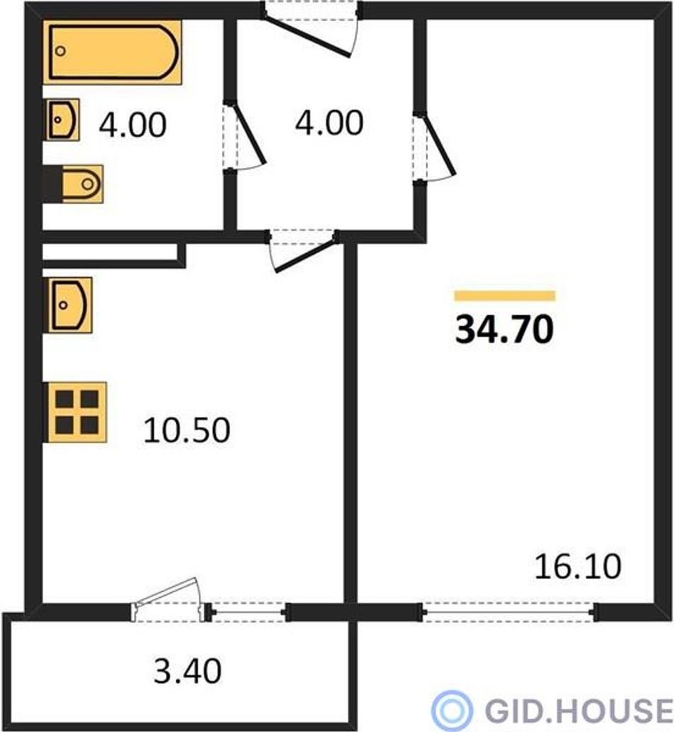 Общая площадь34,7 м²