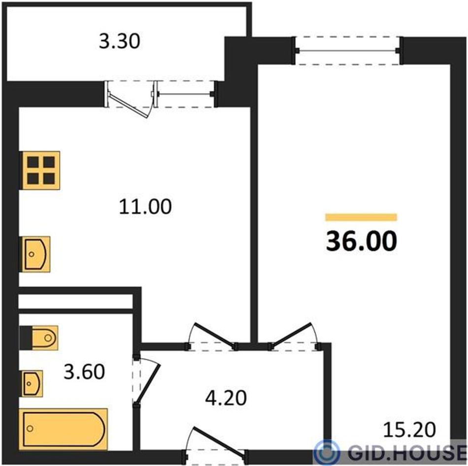 Общая площадь36 м²