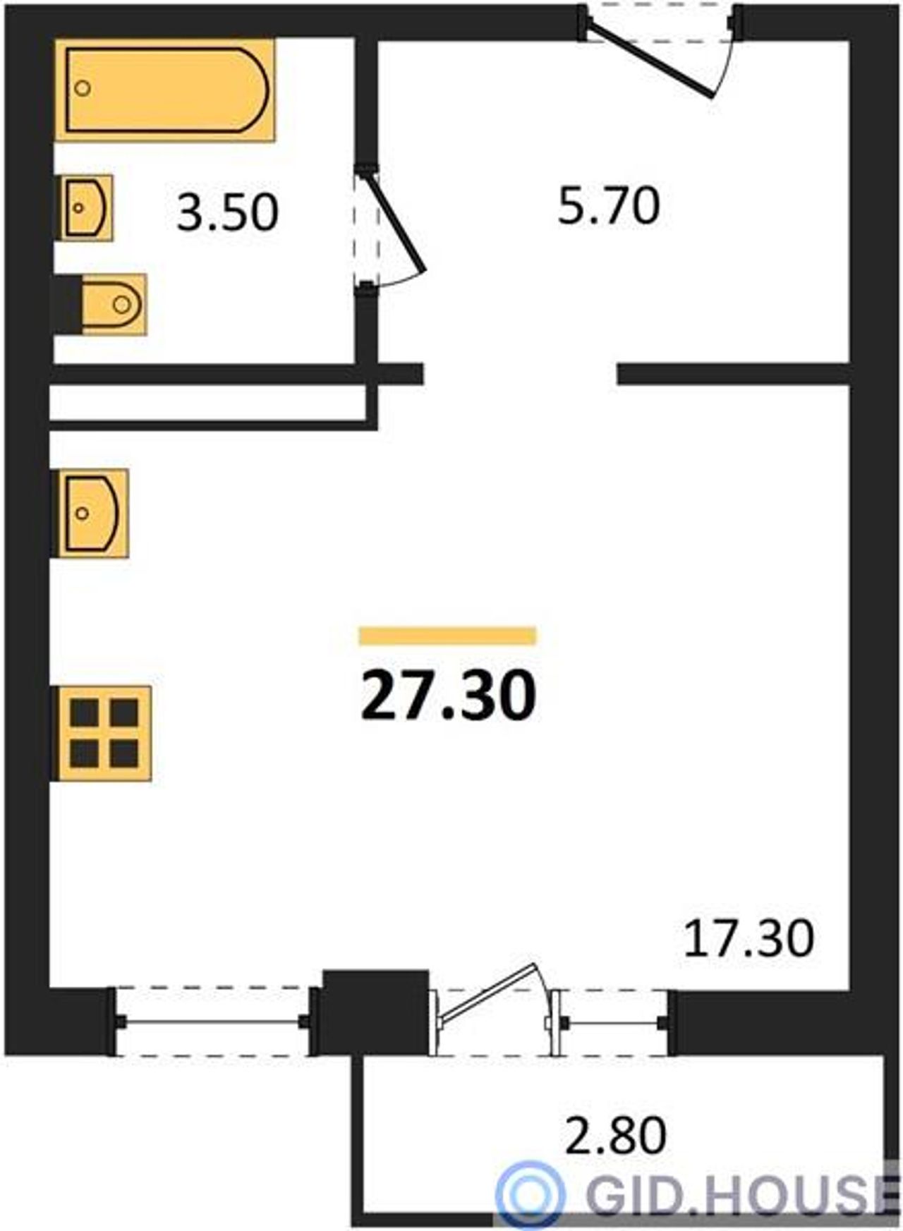 Студия: 27,30 кв.м., 4 этаж в комплексе Нео-квартал "Красная площадь", 4 очередь, корп.17, сдача: 1кв. , этажей: 12, адрес Краснодар г., им. Мурата Ахеджака ул., д. 12, корп. 5, Застройщик: Ромекс Девелопмент.