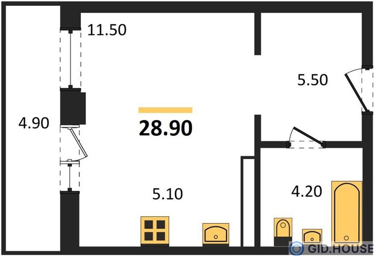 Общая площадь28,9 м²