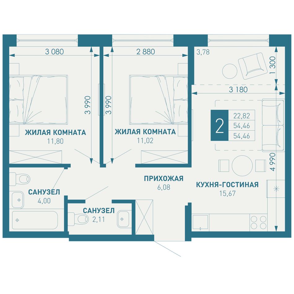 Жилая площадь22,82 м²