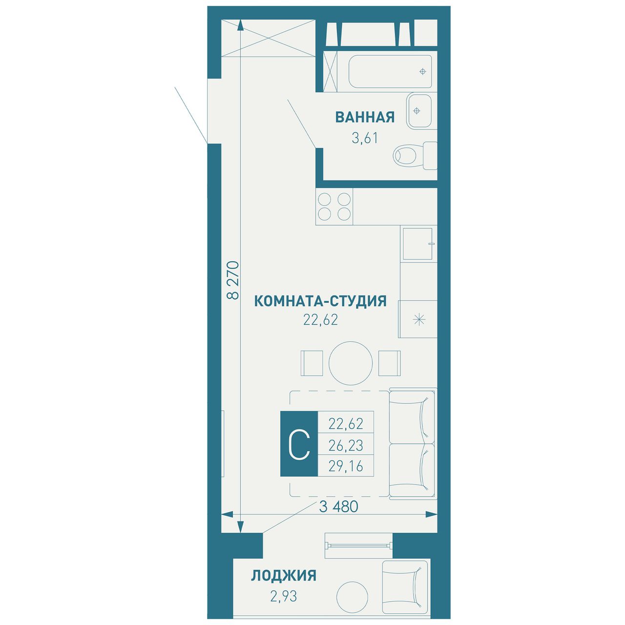 Жилая площадь22,62 м²