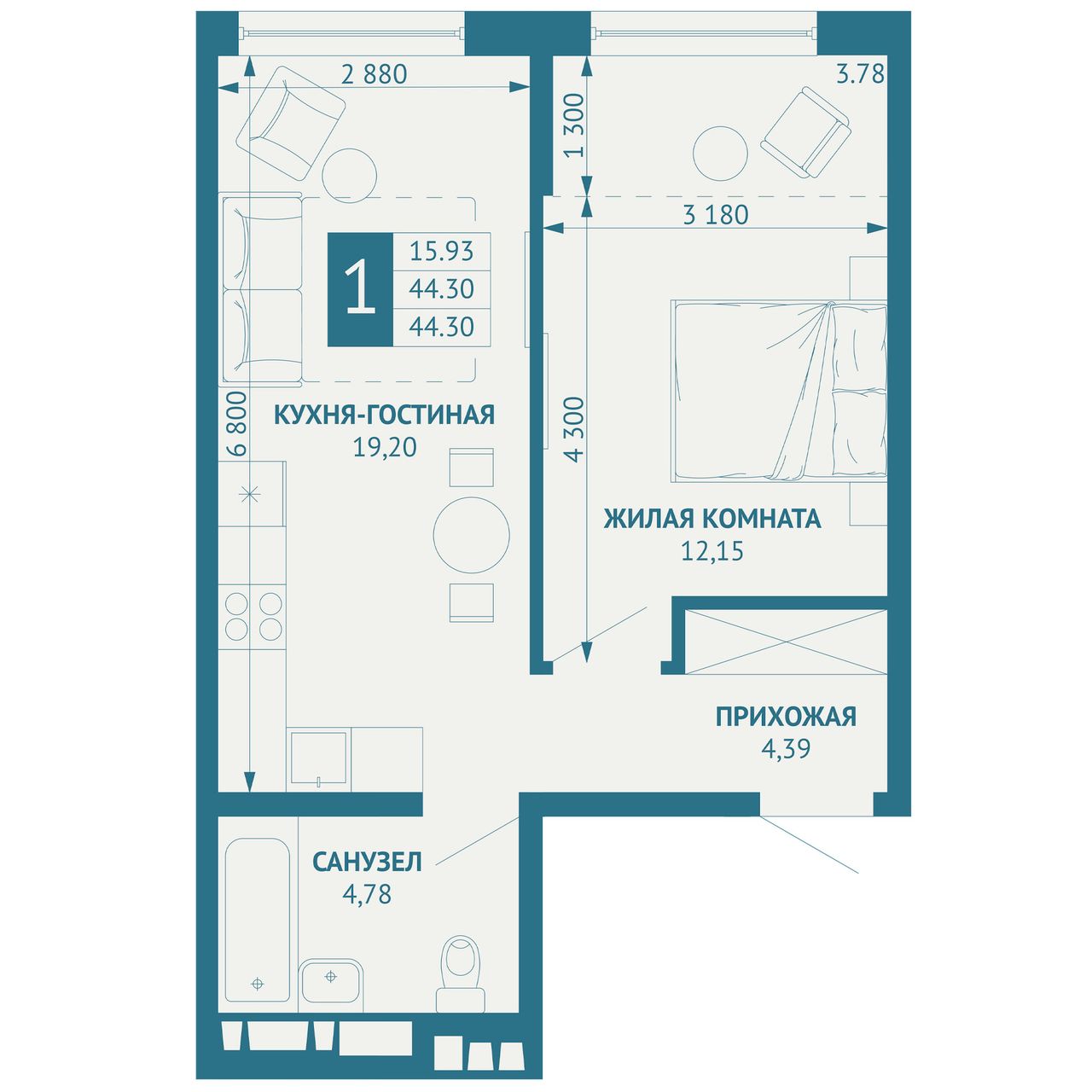 1-комнатная — 45,6 м² 8/18 эт. в ИНАЧЕ в Молодёжном