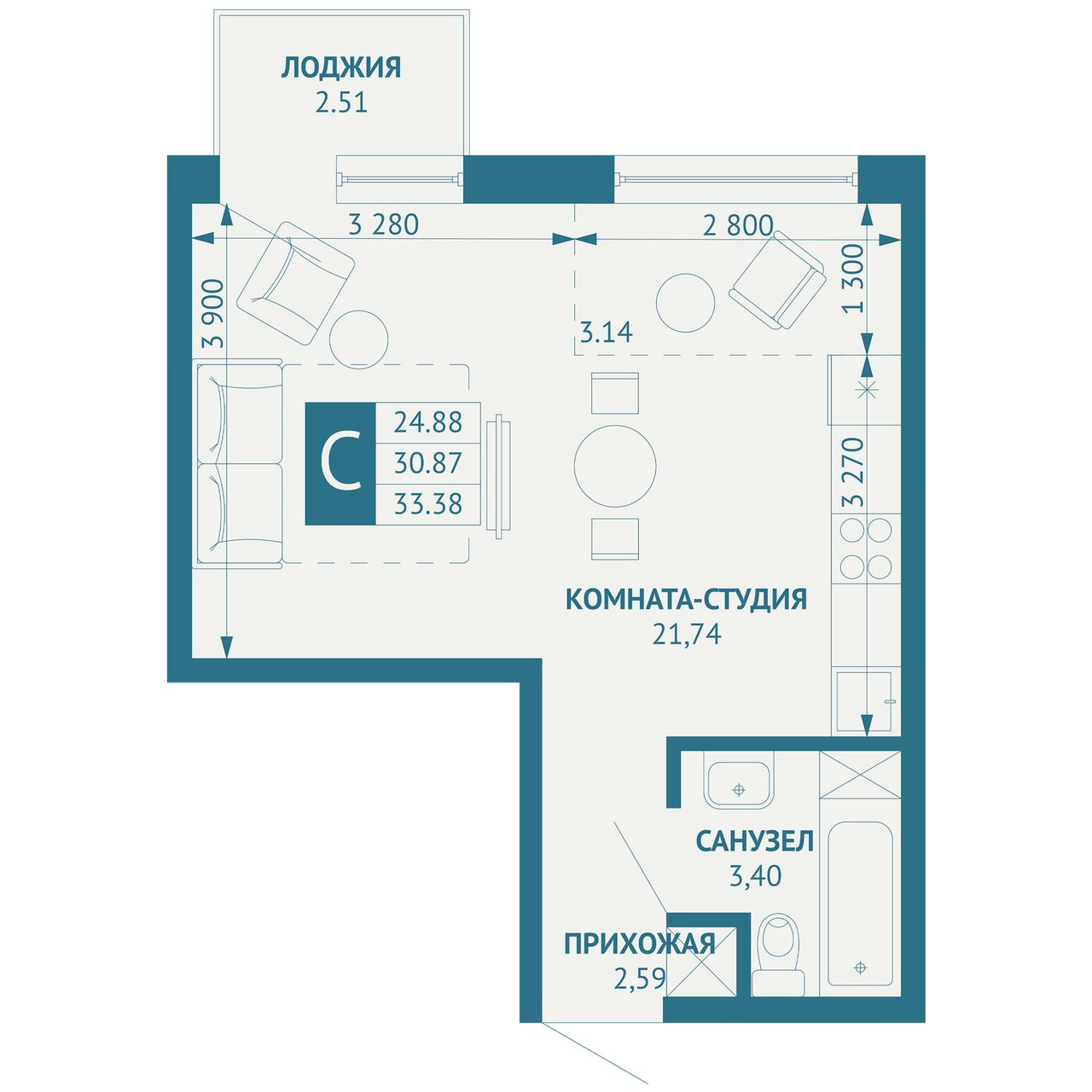 Кухня21,74 м²