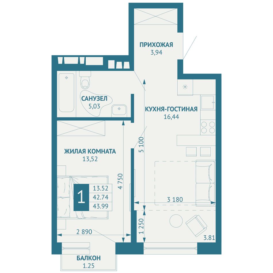 Жилая площадь13,52 м²