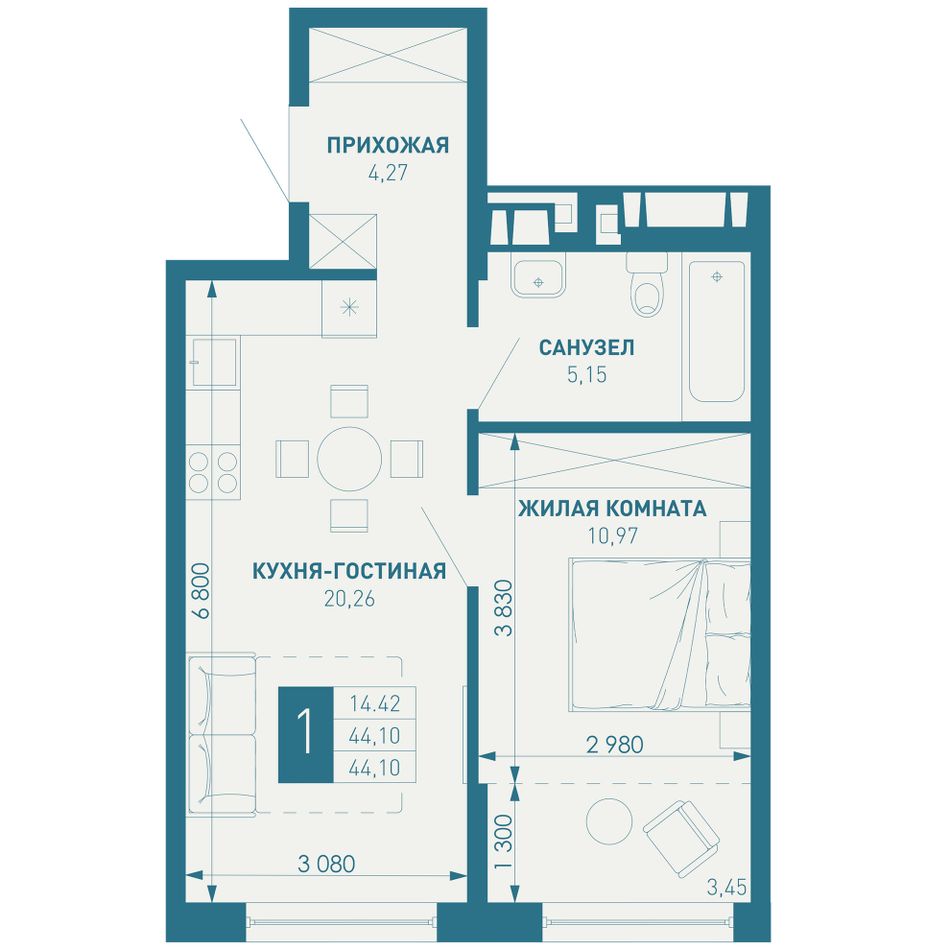 Общая площадь44,1 м²