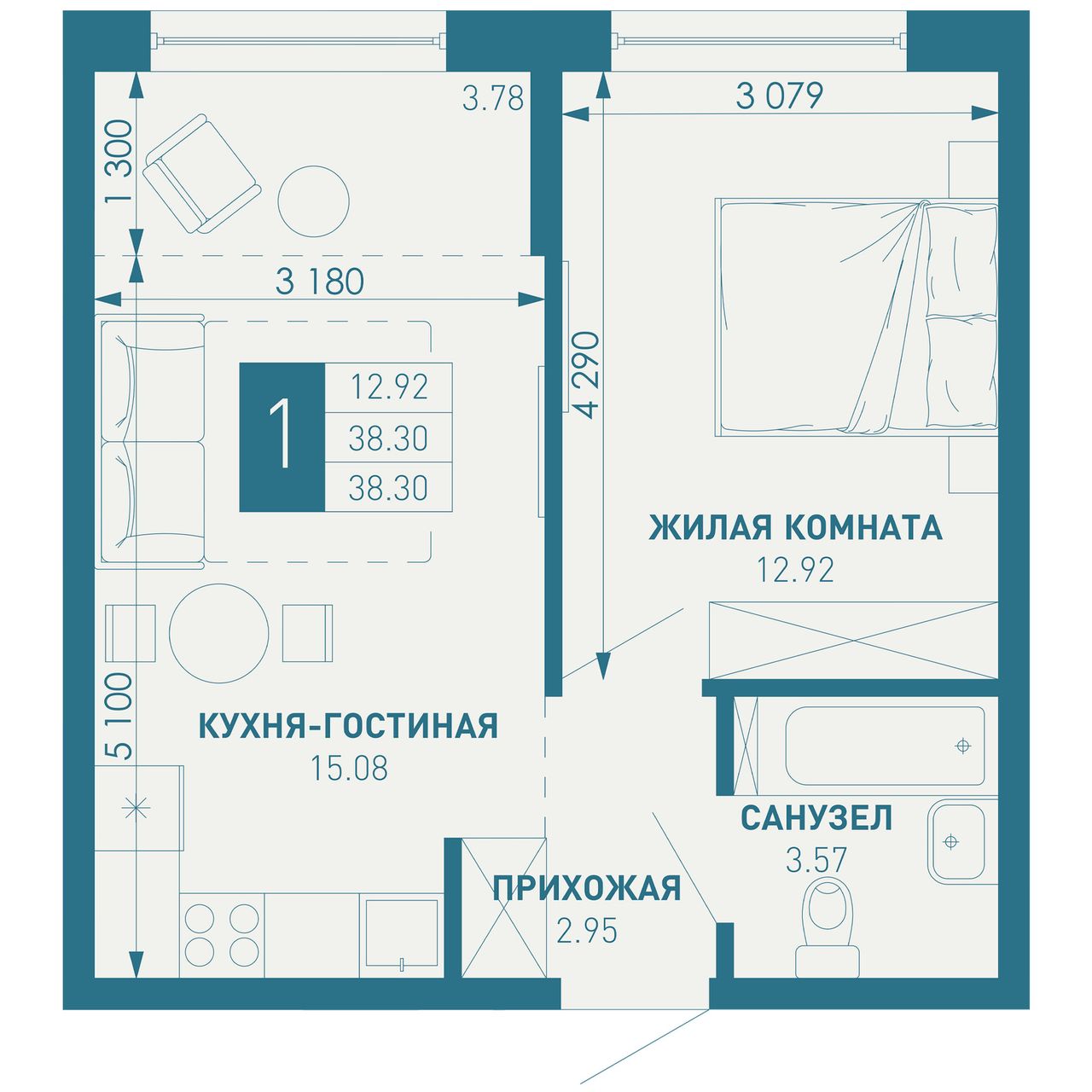 Общая площадь38,3 м²