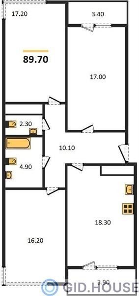 3-комнатная — 89,4 м² 3/24 эт. в Все свои VIP (Вип)