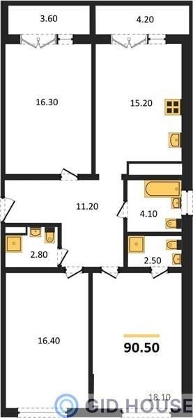 3-комнатная — 89,15 м² 7/24 эт. в Все свои VIP (Вип)