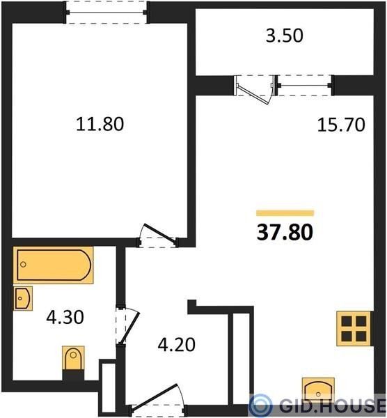 1-комнатная — 37,4 м² 24/24 эт. в Все свои VIP (Вип)