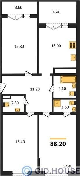 3-комнатная — 87,8 м² 24/24 эт. в Все свои VIP (Вип)