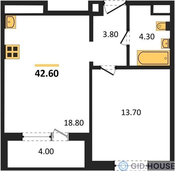 1-комнатная — 41,75 м² 15/24 эт. в Все свои VIP (Вип)
