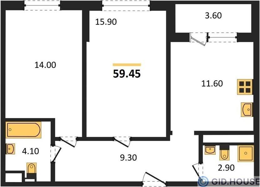 2-комнатная — 59,45 м² 7/24 эт. в Все свои VIP (Вип)
