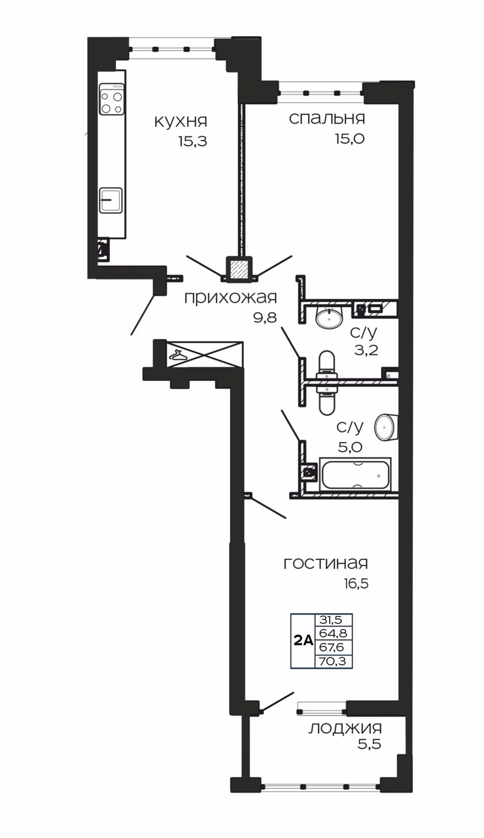 2-комнатная — 70,7 м² 2/17 эт. в Театрал