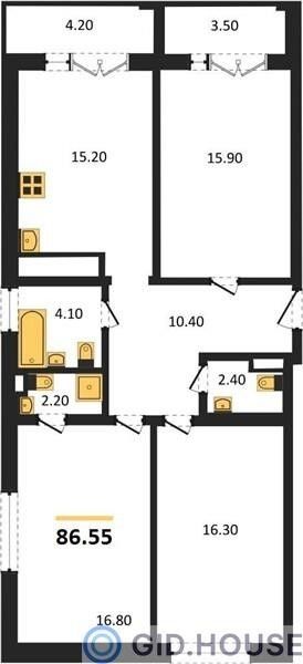3-комнатная — 86,55 м² 18/24 эт. в Все свои VIP (Вип)