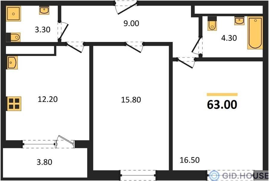 2-комнатная — 62,9 м² 6/24 эт. в Все свои VIP (Вип)
