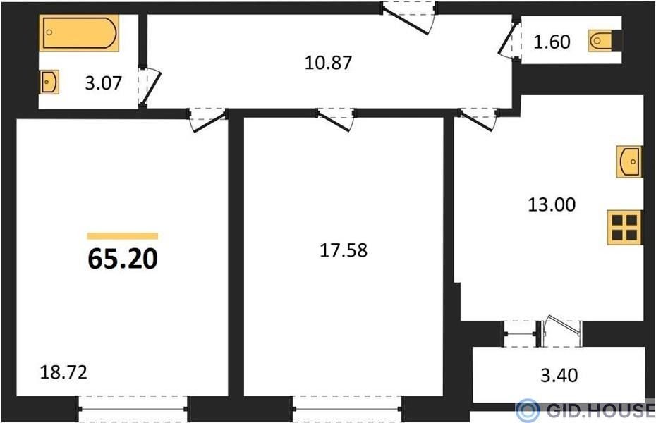 Общая площадь65,2 м²