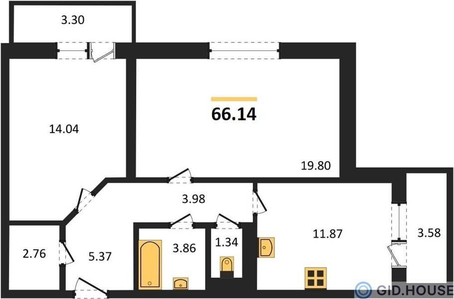 2-комнатная — 66,14 м² 18/24 эт. в Левада