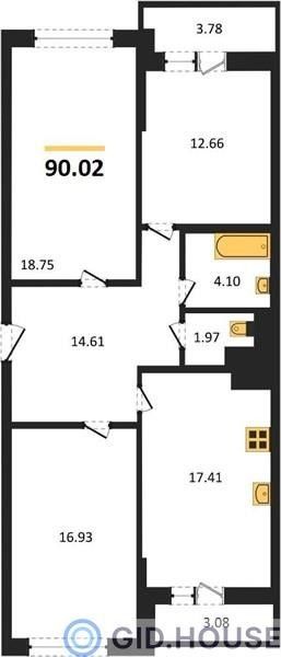 3-комнатная — 90,02 м² 23/24 эт. в Левада
