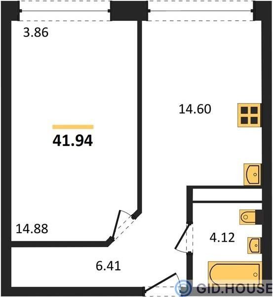 1-комнатная — 42,13 м² 9/24 эт. в Гарантия на Обрывной