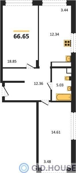 2-комнатная — 66,94 м² 4/24 эт. в Гарантия на Обрывной