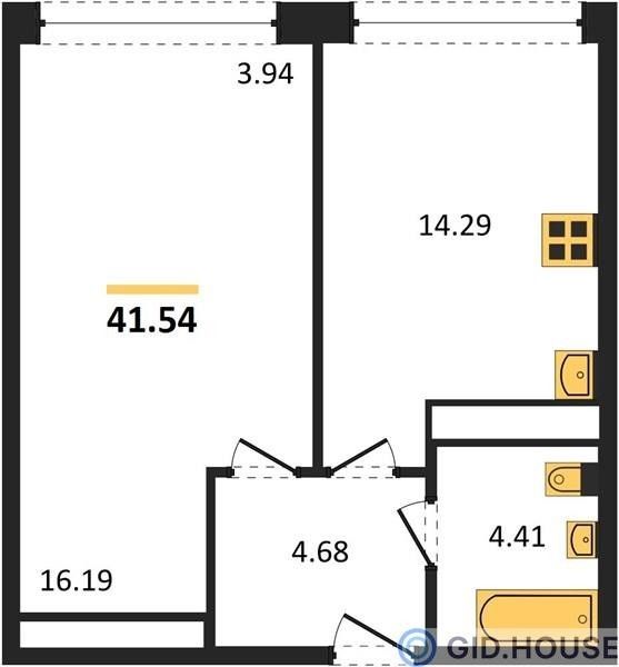 1-комнатная — 41,77 м² 20/24 эт. в Гарантия на Обрывной