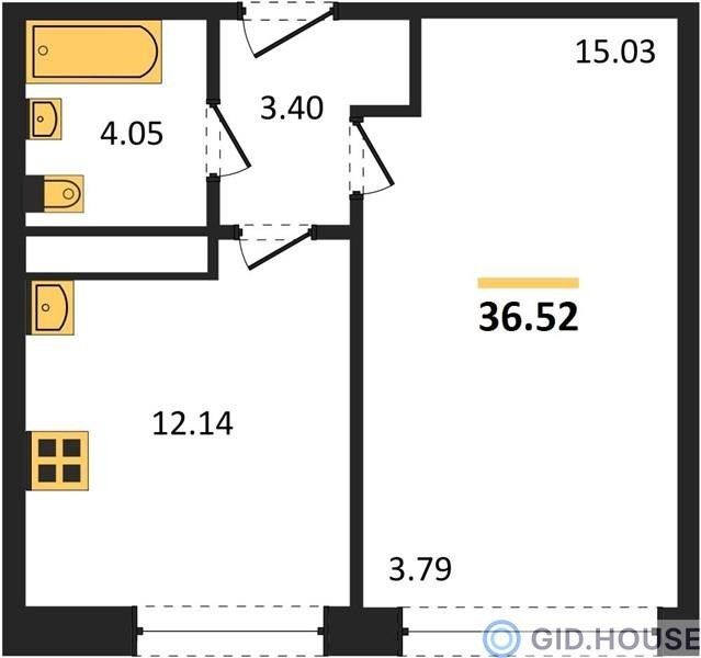 1-комнатная — 36,86 м² 18/24 эт. в Гарантия на Обрывной
