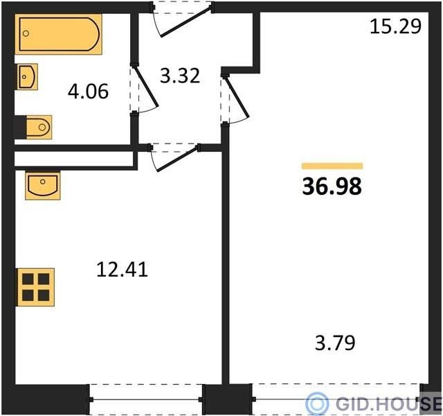 1-комнатная — 37,14 м² 16/24 эт. в Гарантия на Обрывной