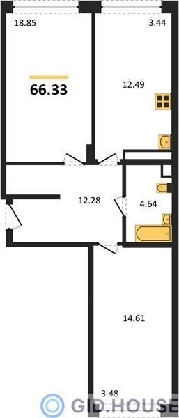 2-комнатная — 67,04 м² 3/24 эт. в Гарантия на Обрывной