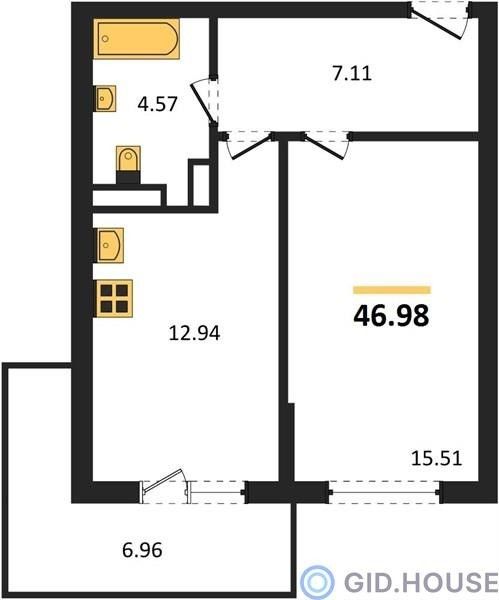 1-комнатная — 46,98 м² 15/16 эт. в Спутник