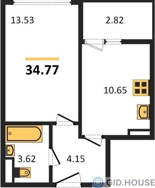 Общая площадь34,77 м²