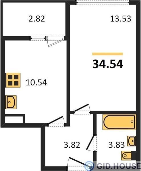 Общая площадь34,54 м²