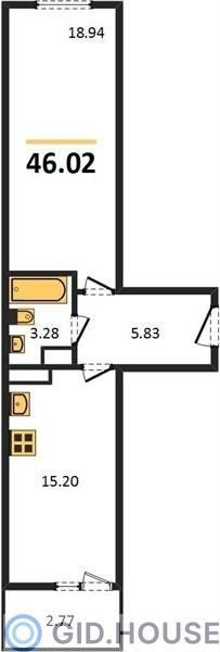 Общая площадь46,02 м²