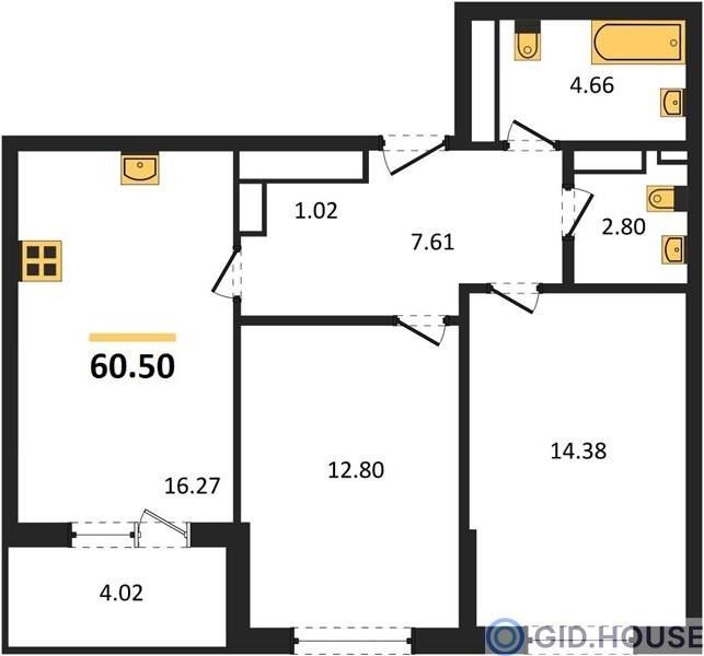 2-комнатная — 60,5 м² 4/9 эт. в Друзья