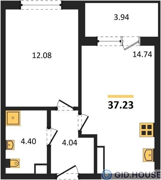 1-комнатная — 36,1 м² 2/9 эт. в Друзья