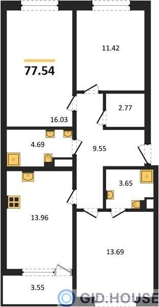 Общая площадь77,54 м²