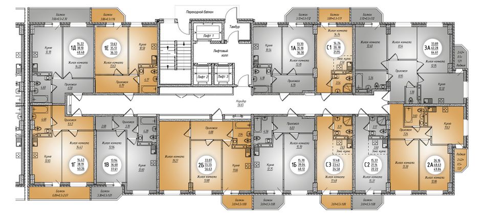| 3-комн. | 59 - 68 м² | 11,2 - 11,7 млн ₽ |