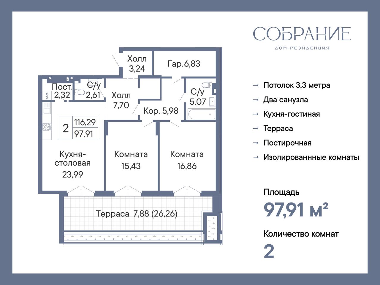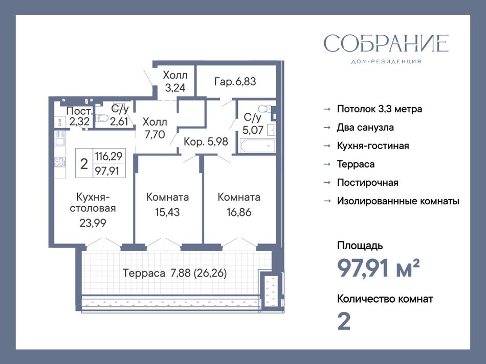 2-комнатная — 97,91 м² 1/7 эт. в Дом-Резиденция Собрание