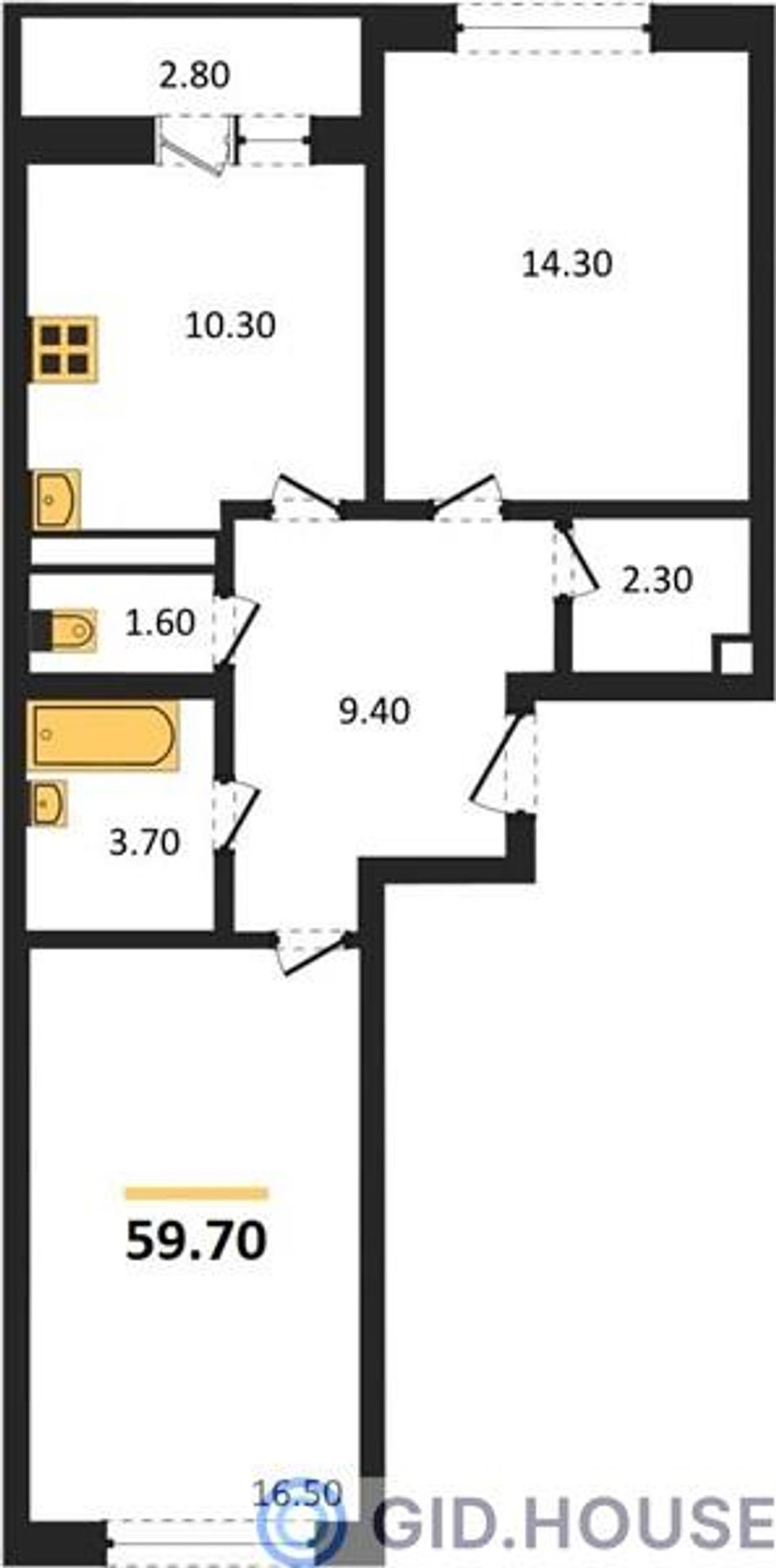 Общая площадь59,7 м²