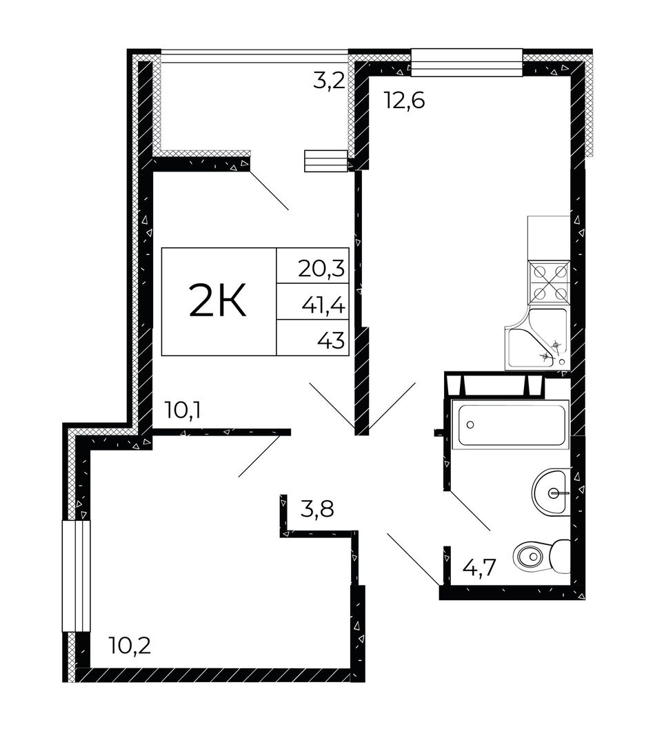 | 1-комн. | 34 - 44 м² | 3,8 - 7,1 млн ₽ |