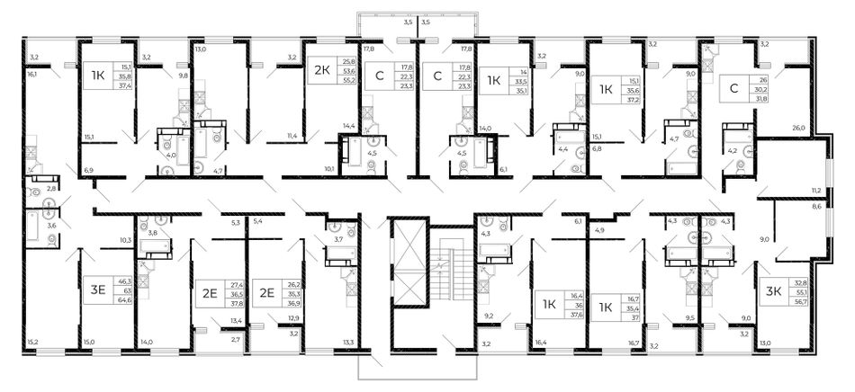 | 2-комн. | 39 - 57 м² | 6,4 - 9,6 млн ₽ |