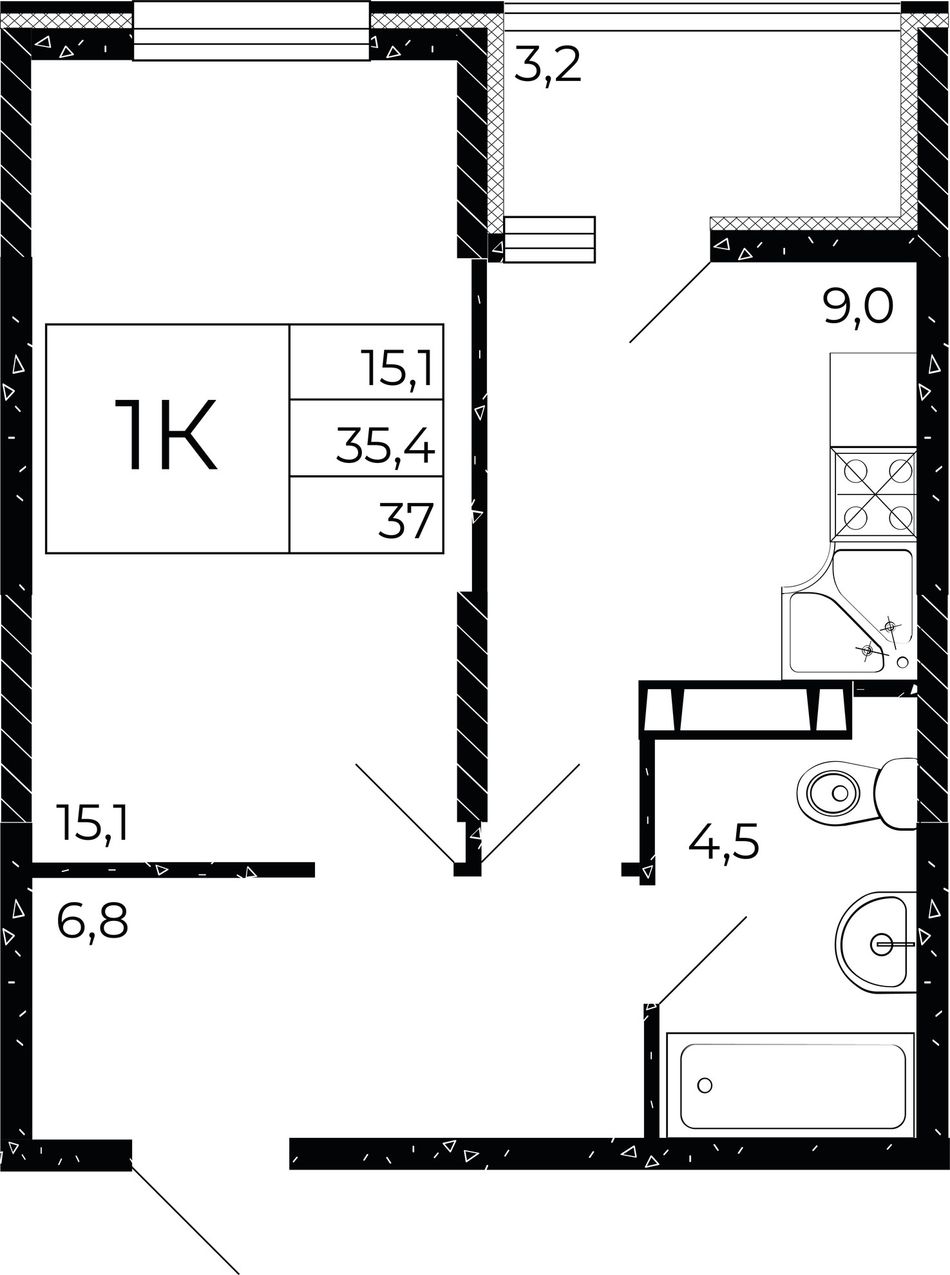 Общая площадь37 м²