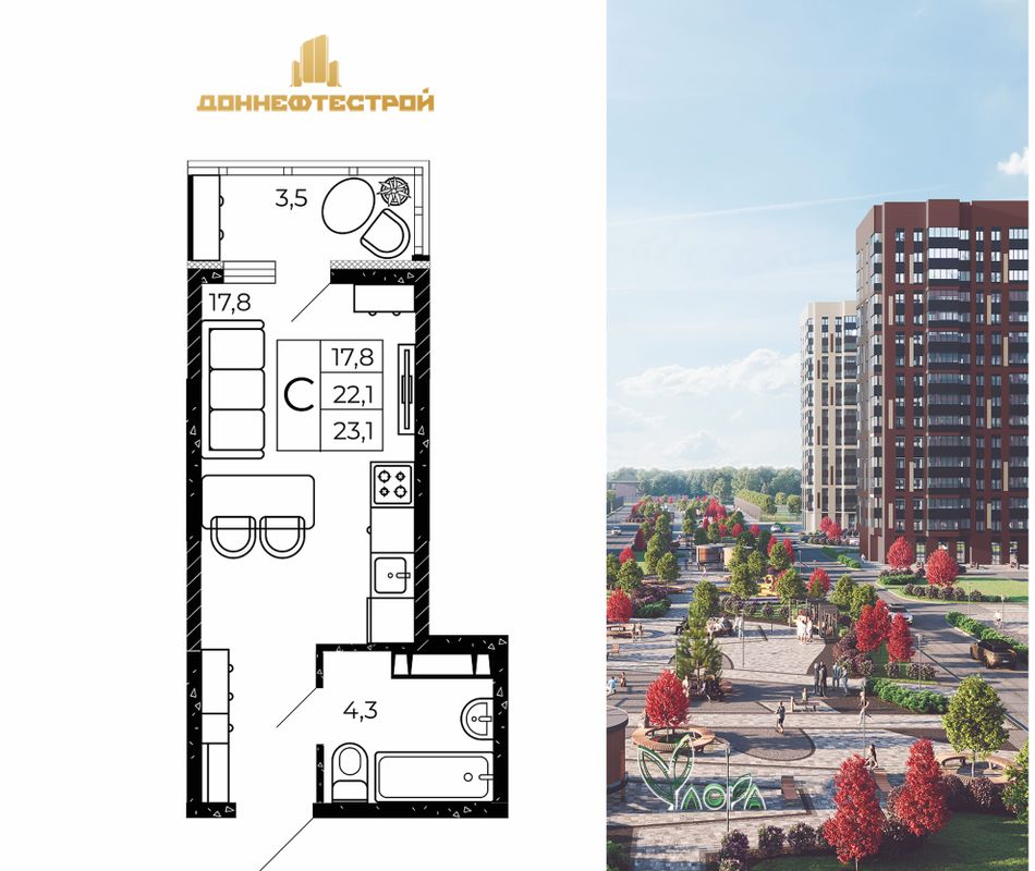 | Студия | 23 - 28 м² | 3 - 4,6 млн ₽ |
