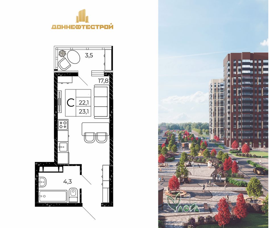 | Студия | 23 - 28 м² | 3 - 4,6 млн ₽ |