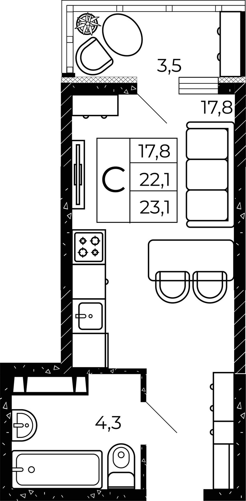 Общая площадь23,1 м²