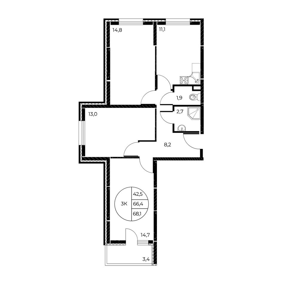Общая площадь68,1 м²