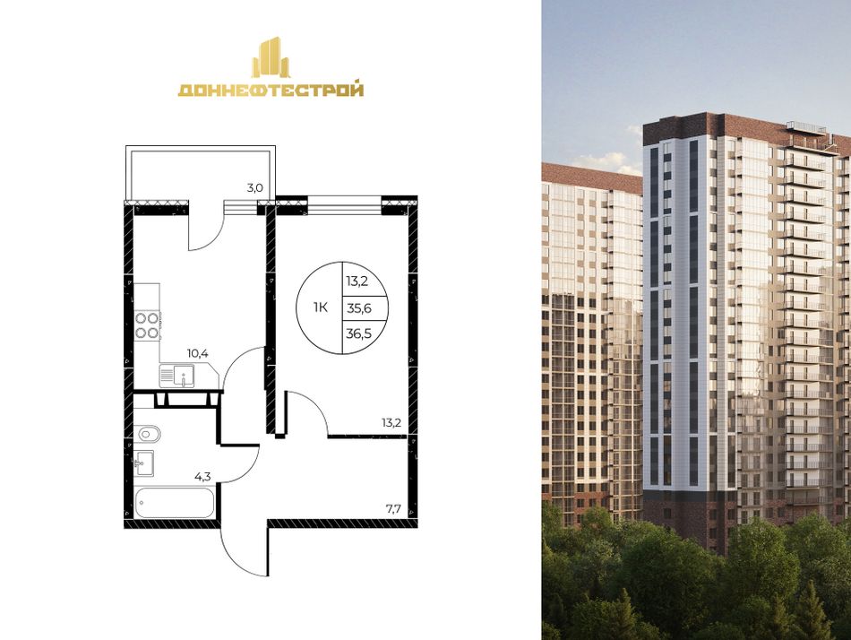 1-комнатная — 36,5 м² 4/25 эт. в Панорама на Театральном