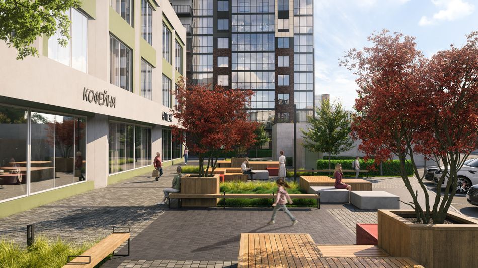 На первых этажах в каждом корпусе будут располагаться магазины, кафе и маркетплейсы, а торгово-деловой центр разместит в себе офисы и ритейл разного формата.
