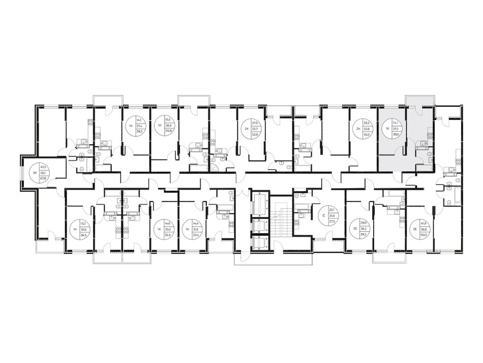 | Студия | 23 - 24 м² | 3,8 - 4,6 млн ₽ |
