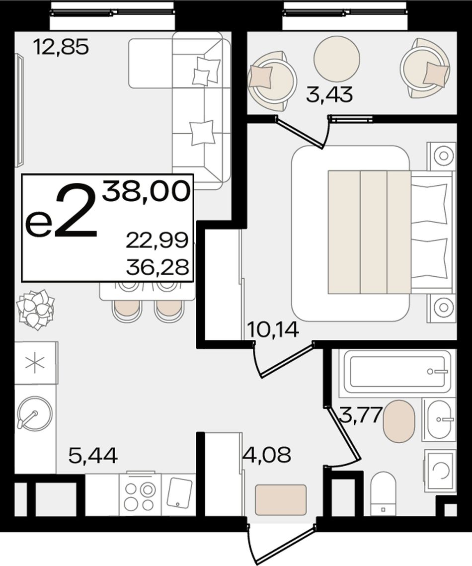 2-комнатная — 38 м² 2/18 эт. в Патрики